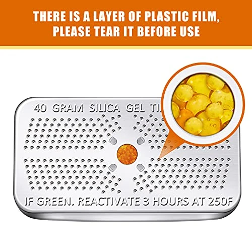 - Portable tin canister: indicating silica gel dehumidifiers are tightly encased in a compact tin canister, which is equipped with vents and a hole for easy inspection; The canister is made of aluminum, which will be sturdy and can serve you for a long time