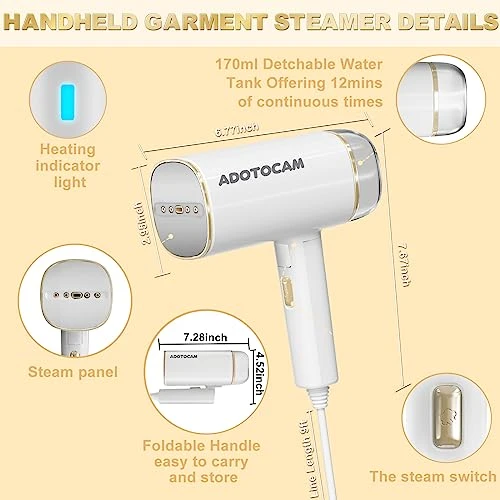 - 【Unique Folding Design】Handheld steamer features a foldable design that is compact and lightweight, it weighs 1.5 lbs. You can easily store it in your handbag, suitcase or drawer, it comes with an easy-to-carry storage bag, Ideal for travel companion.