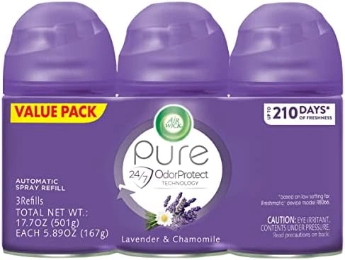 - Refills for use in Air Wick Automatic Air Freshener spray gadgets. The sprays bursts at 9, 18 or 40 minutes settings to achieve desired fragrance level