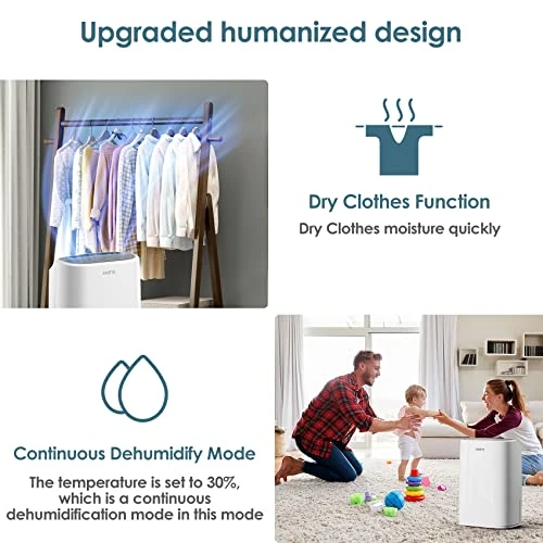 - 𝐐𝐮𝐢𝐞𝐭 𝐌𝐨𝐢𝐬𝐭𝐮𝐫𝐞 𝐀𝐛𝐬𝐨𝐫𝐛𝐞𝐫 & 𝐃𝐫𝐲 𝐂𝐥𝐨𝐭𝐡𝐞𝐬 𝐌𝐨𝐝𝐞: Low noise design, less than 38dB, quiet operation, no annoying sound, you can enjoy a quieter sleep. Simultaneous drying mode: If you need to dry your clothes, you can choose the drying mode, which is suitable for wet weather and helps you remove excess water from your clothes and keep them dry and clean.