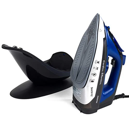 - Measuring 30l x 16w x 27h cm, the iron has a smooth ceramic soleplate and self-clean function which removes limescale and impurities.