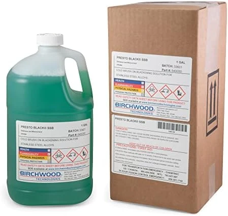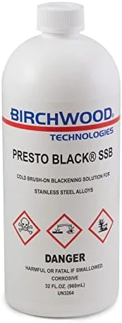 - Creates a rich, vibrant black patina. Ideal for use on a variety of stainless alloys including 304, 316, 410, 17-4 and many more.