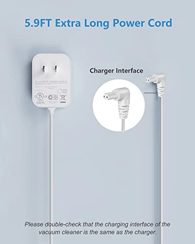 - Replacement Black and Decker Floor Sweeper Vacuum Charger Specifications: input: 100-240V 50/60HZ;Black + Decker vacuum charger cord with 5.9FT total. The Black + Decker charger cord is sufficient for indoor use. Strain-eliminated tail cards for greater usability and resistance to flexing.