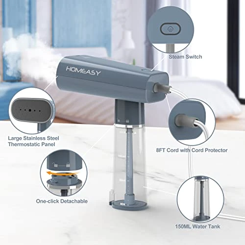- HOMEASY garment steamer for clothes is safe enough to use. The portable iron steamer will automatic shut-off when the reservoir runs dry or the unit gets too hot. More durable and heat-shielding with high quality ABS material, never worry about hand scald and burnt fabrics.
