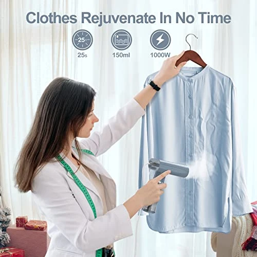 - 25s FAST HEAT-UP & SMALL BODY BUT POWERFUL ENERGY – Thanks to its ergonomic nozzle and lightning fast heating technology, our handheld garment steamer for clothes ensures quick steaming performances in less than 25 seconds. 150ml large water tank with 1000W supercharged power provides up to 10 minutes of steaming, you don’t have to refill water frequently. Steam ironing 3-4 T-shirt at a time.