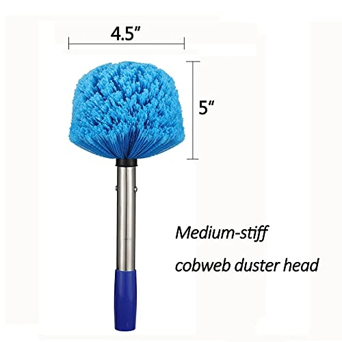 - 【Easy to Assemble & Use】Just screw cobweb brush twisted onto the extension pole and use screw to reinforce. Also easy to disassemble and storage. The long handled dusters are very good at cleaning cobwebs and dust from under the house eaves, porch, walls, blinds, windows, house ceiling fan, garage, pool cage and lanai, etc.