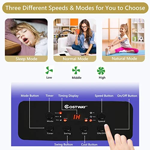 - Humanized Design— This cold fan has so many intimate designs that timing is one of them. While using the cooler during your sleep, 7.5 hours timer can ensure your safety and health. In addition, the remote control allows you to operate the air cooler from a distance, which is very convenient.