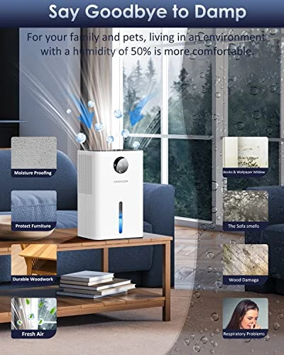 - User-Friendly Dehumidifier: According to research, if the moisture in the air above 50% can breed uncomfortable or other health problems, the mini dehumidifier can help you. Dehumidifier with a compact size of 6.38X5.12X9.84 inches and a built-in handle on the back, designed for every corner you need. Where you need it, where it is. Perfect for high humidity spaces, dehumidifier for basement, bathroom, bedroom, closet, planting tent, RV. Say goodbye to the humid environment.