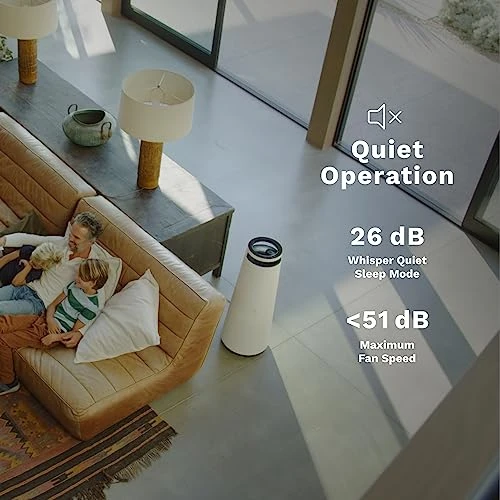 - WIFI APP & KEY FUNCTIONS: Connect your device with the DH Lifelabs App. Works with Google Home or Amazon Alexa. Auto mode function sets fan speed setting based on the rooms real-time air quality. Quiet operation with noise levels as low as 26 dB, the Sciaire + HEPA cleans your air without keeping you up at night.