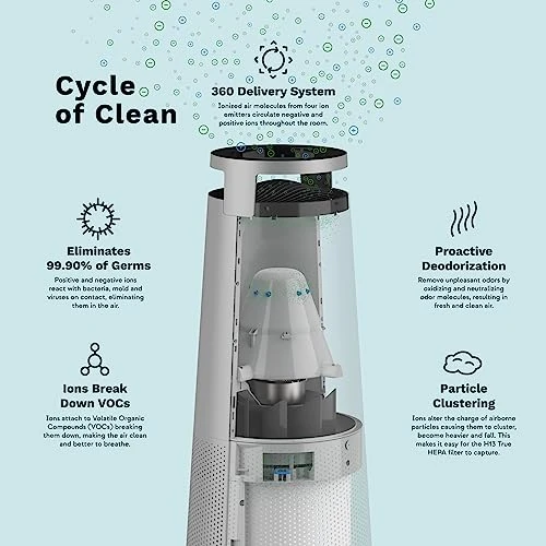 - ION CLUSTERING PURIFIES AIR: Airborne particles become charged and stick together, forming bigger particles and weighing them down, resulting in these enlarged particles falling out of the breathing zone and making them easier to catch with a filter.