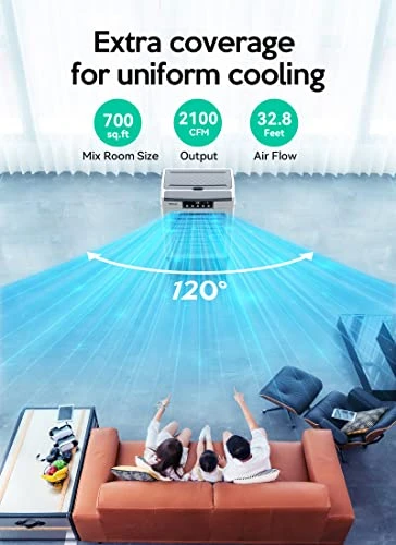 - 【Larger Coverage】With its 120° oscillation, this portable swamp cooler can handle spaces of up to 700 square feet, puts out 2100 cubic feet of cold air a minute, effectively distributes the cold air all throughout the space.