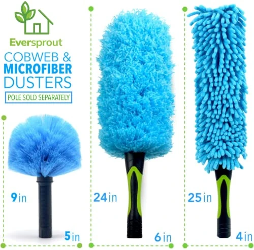 - TWISTS ONTO ANY UNIVERSAL POLE, GIVING YOU EXTRA REACH – The 3 Dusters twist onto all Eversprout Extension Poles or any pole with Universal/Standard US Threading, or 3/4 inch Threading. Simply twist the Duster attachment of choice onto the pole, reach to the sky, and conquer those hard to reach spots! (Pole Not Included)