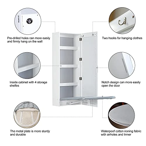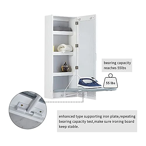 - FOLDABLE:The wall mounted ironing board can be fold up to save space when not in use,there is a dressing mirror to decorate your home and makeup yourself.