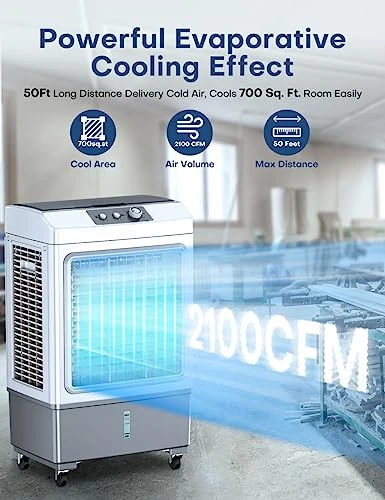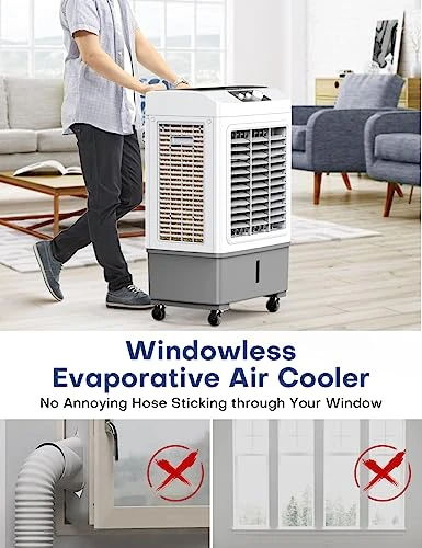 - ❄【Adjustable Air Outlet for Maximum Cooling】Don’t let the heat spoil your outdoor fun! With adjustable air outlets, a manual up-down adjustment of 60°, and automatic left-right oscillation of 120° by simply pressing a swing button. The air cooler delivers cool air to every corner of your space. Perfect for relaxing on the patio, hosting a backyard BBQ, or camping in the great outdoors. So why suffer in the heat? Choose our room evaporative cooler and enjoy a comfortable outdoor experience!