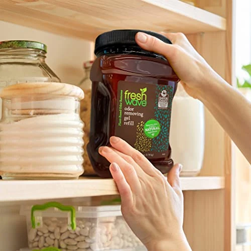 - HIDDEN ROOM DEODORIZER: Stock up on the powerful, odor-removing gel and top off any Fresh Wave 7 oz. or 15 oz. container. Every 15 oz. lasts about 30-60 days. Tuck the odor neutralizer away on bookshelves, cabinets, closets, and trash canisters.
