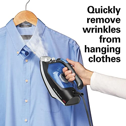 - Quickly remove wrickles from hanging clothes. The wide nozzle directs continuous steam onto clothes to loosen wrinkles and freshen up your clothes — no ironing board needed with this steamer iron for clothes. The iron/steamer is powered by 1200 watts.