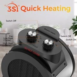 Amazon Basics 500-Watt Ceramic Small Space Personal Mini Heater – Black
