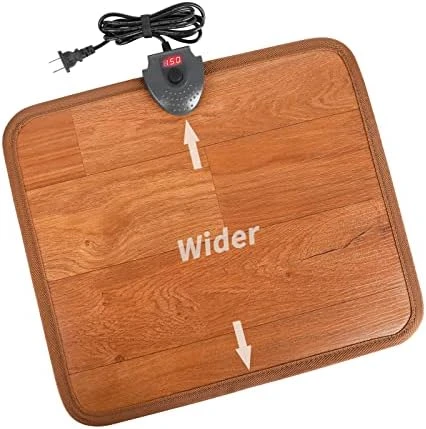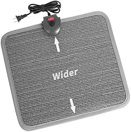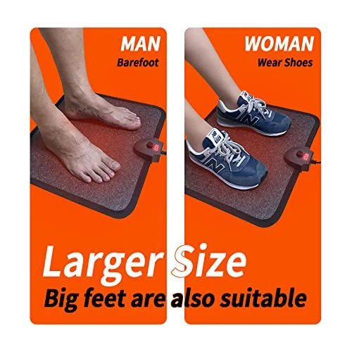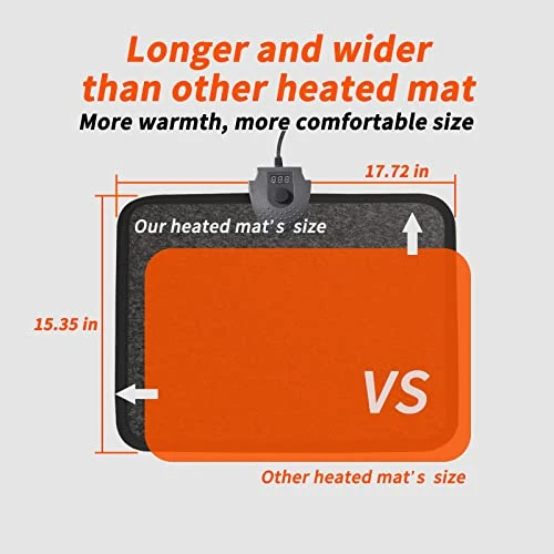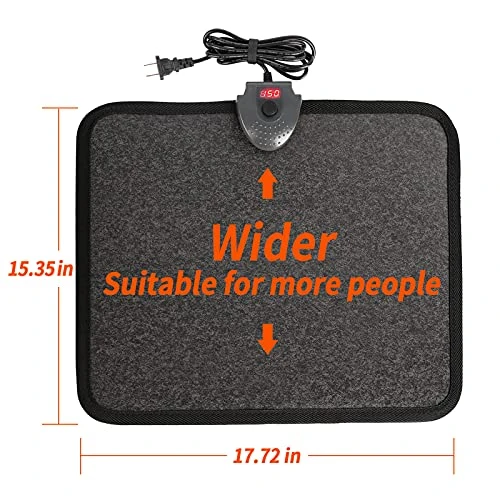 - 【Wider Size / Durable Material】Our electric foot warmer mat are wider than other feet warmers on the market(Size:15.53 * 17.72 inch), and Can easily accommodate people with long feet. The surface material of this heated foot rest under desk is high-quality thermal conductive floor leather, which is waterproof, wear-resistant, insulating, and flame-retardant. The back of the heated office mat is light-colored non-slip silicone (will not fade and will not stain the floor).