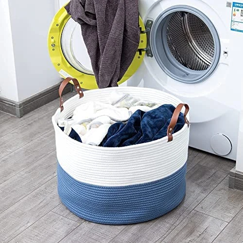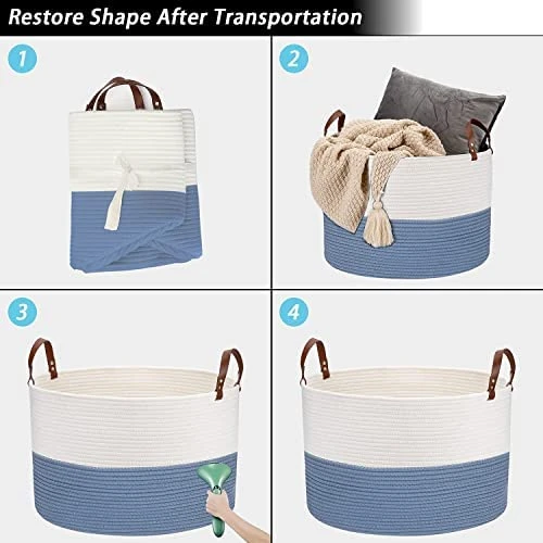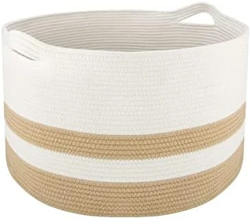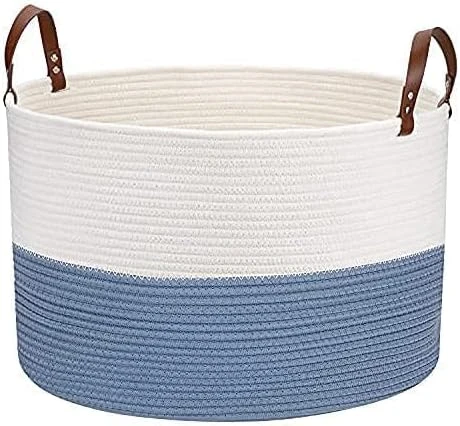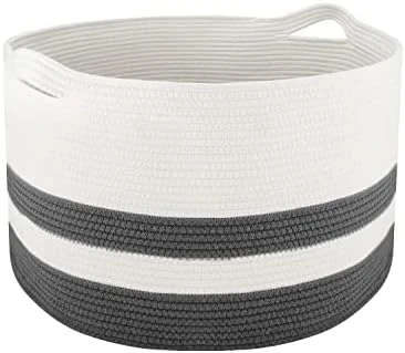 - 【Extra Large Size】The size of our decorative basket is 20″× 20″×13″, which is enough to store large items such as extra blankets, baskets, quilts, duvets, pillows, cushions ,stuffed toys, winter clothing, laundry. It will be a great baby hamper for nursery, baby laundry basket, throw blanket basket, big basket for blankets. It also provides plenty of space for smaller clutter, such as books, magazines, towels, toys and other groceries. Save your time doing housework and make home clean easily.