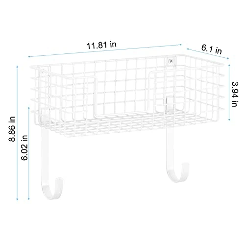 - 【Unique Design】The basket’s usable inner space of ironing board hanger with iron holder is 11.81” x 6.1” x 3.94” and its concave design for easy access to the iron. 2 removable metal hooks fits T-leg ironing board, but unsuitable for Y-leg.