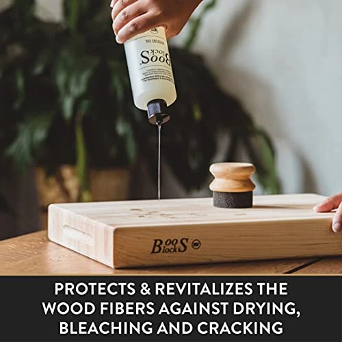 - Once a month, John Boos Mystery Oil to your cutting board or butcher block and allow it to soak in overnight. Repeat the process more often when your board is new, or if you live in a dry/arid climate