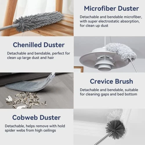 - CONVENIENT SET: The set includes a growth pole and multiple dusting tool heads, which can be changed according to different dusting objects and they are very convenient to use