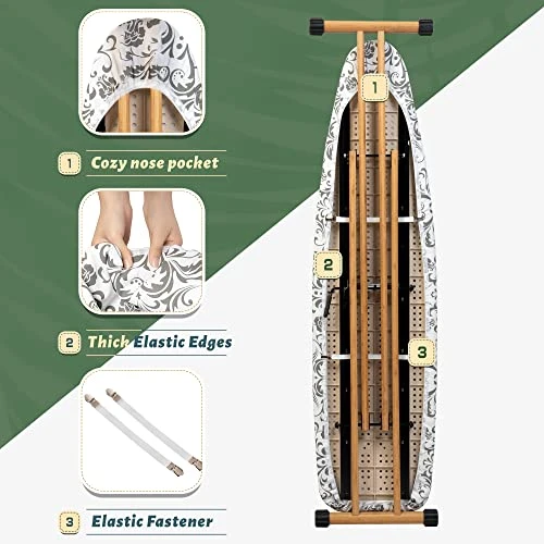 - Resistance High Temperature Above 210 ℃ (410℉) -The cover made by 100% cotton fabric with titanium coating on surface. It can reflect the heat of the iron and you will achieve wrinkle-free clothes in a fraction of the time. Help you ironing faster.