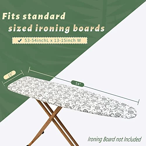 - Fit a Wide Range of Boards – The 15 inch x 54 inch cover fits all standard sized ironing boards. It is designed to fit boards that measure 53 to 54 inch in length and 13 to 15 inch in width.(PlEASE NOTE: the ironing board is not included.)