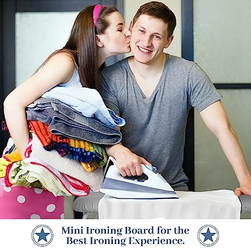 - 【Portable Size】The mini ironing board features a compact size that is perfect for small spaces and travel. It can easily be stored in tight spaces such as closets, drawers, or suitcases. This makes it an ideal choice for traveling or temporary accommodations.