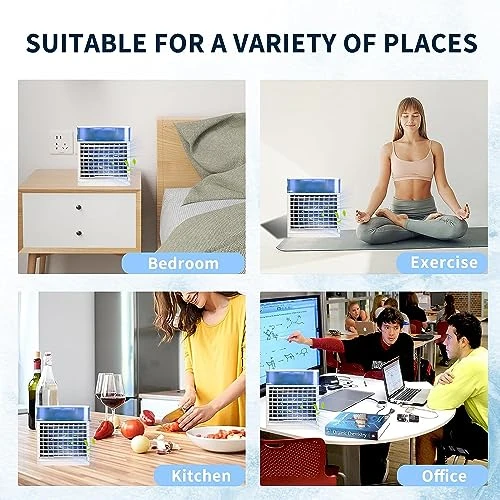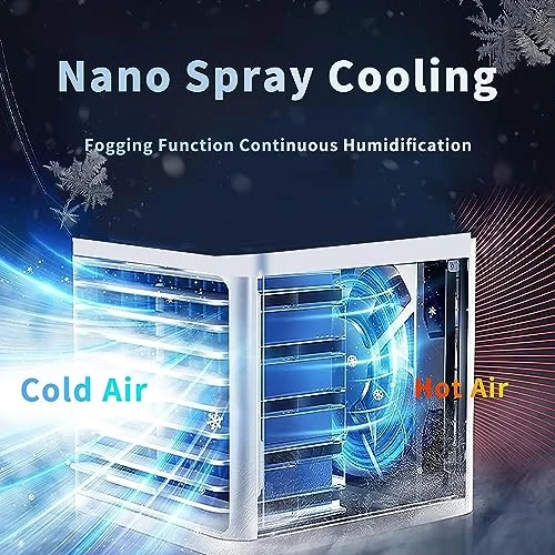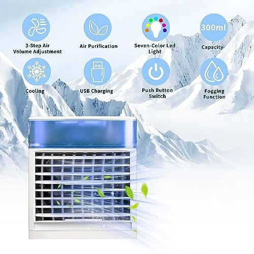 - Large Capacity Water Tank and Portable Charging: The portable air conditioner with a large 300ML water tank can be used for 6-8 hours of fogging and cooling. The comfort is gentler than an air conditioner and cooler than a fan. the USB charging port is powered by a laptop, adapter, mobile power etc. This portable ac air conditioner can keep you comfortable even on hot summer days.