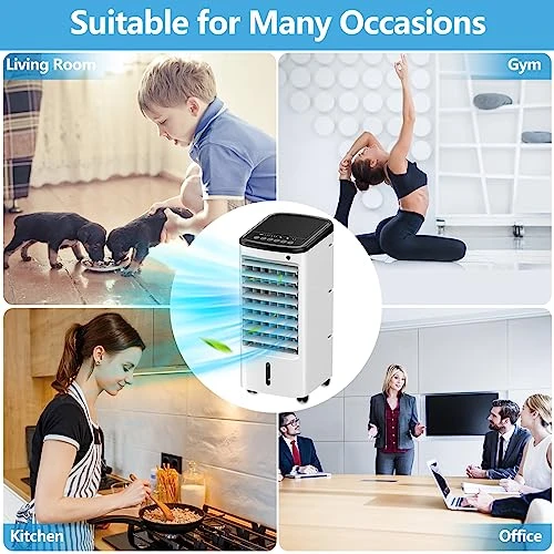 - ❄️【Easy to Operate&No Assembly Required】Evaporative Air Cooler no need for a hose& window, simply take air conditioner portable out of the box and plug it in to start enjoying the long time cooling benefits. Put the ice box in the refrigerator to freeze, and then use it in the air conditioner, the swamp Cooler cooling effect will be better, ensuring that everyone can stay cool and comfortable during the summer months. 3-in-1 air conditioner is suitable for Living room, Kitchen and Office etc.