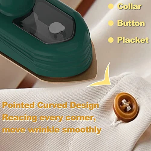 - Pointed Curved Design: Sharp corner designed electric steam iron handheld garment steamer can easily move smoothly on all types of clothes, 360 degree ironing without dead corners, portable steamer for clothes can flexibly iron narrow areas such as buttons, plackets, and collars, and elegantly show details, meet your different ironing needs, finish ironing easily.