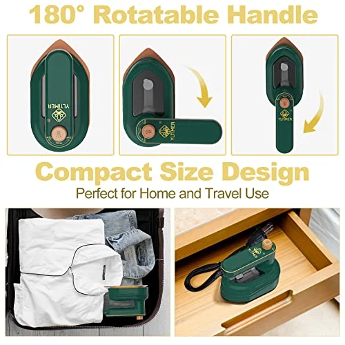 - Practical and Portable iron: Travel steamer for clothes portable mini features a rounded design and hidden water tank which make travel iron mini with steam beautiful, compact and practical. The Portable steam iron for clothes uses a large titanium panel, which can be used for a lasting time and no damage to clothes. The handle folds 180 degree convenient to use, the travel size steamer for clothes is a good choice for home or travel and business.