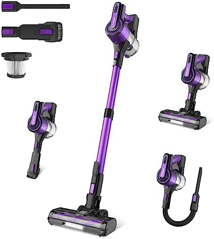 - 【8-in-1 Multifunctional Cleaning】A true multi-purpose cleaning experience with this 8-in-1 cordless vacuum! This battery stick vacuum cleaner is equipped with a retractable tube, flexible hose, and three handy attachments – the main floor brush head, 2-in-1 brush, and crevice tool – making it perfect for any cleaning task.