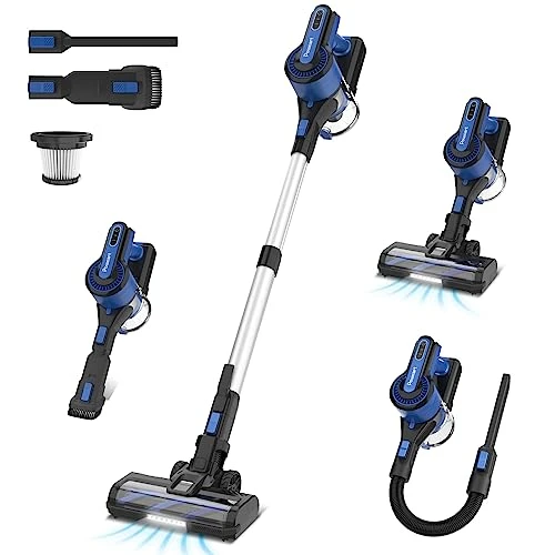 - 【5-Stage High-efficiency Filtration System】With its 5-stage high-efficiency filtration system, this rechargeable cordless vacuum captures and traps 99.99% of dust particles as small as 0.1 microns, ensuring that your home stays clean and healthy. The washable strainer and reusable HEPA filter work together to efficiently filter dust and dirt, protecting the motor and keeping the vacuum cleaner operating effectively.