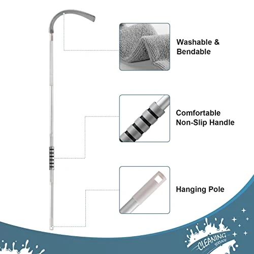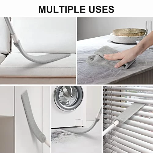 - 【Multifunctional Retractable Dust Gap Cleaner】Package included: 4 x 14.5”aluminum poles, 2 x microfiber cloth covers, 1 x flexible panel, 1 x brand packaging box. The gap dust cleaning tool is suitable for bedrooms, living rooms, kitchens, bathrooms, laundries and garages. With this retractable gap dust cleaning artifact, it’s easy to clean ceiling, high fan, blinds, shelves witout ladder. Also it is a good cleaning tool for baseboard, under sofa/furniture/refrigerator/bed or others appliances.