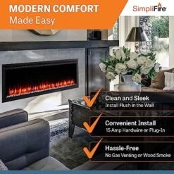 SIMPLIFIRE Allusion Platinum 60″ Linear Electric Fireplace – Black, SF-ALLP60-BK