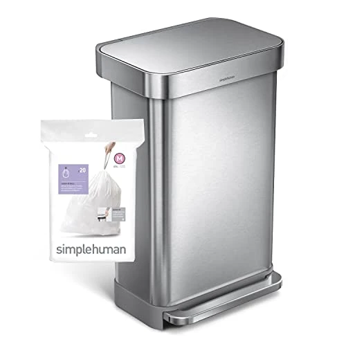 - ONE-BY-ONE – simplehuman’s quick-dispense pack lets you grab liners one by one without the hassle of hard-to-find perforations or messy unraveling.