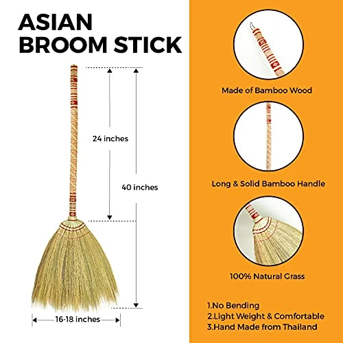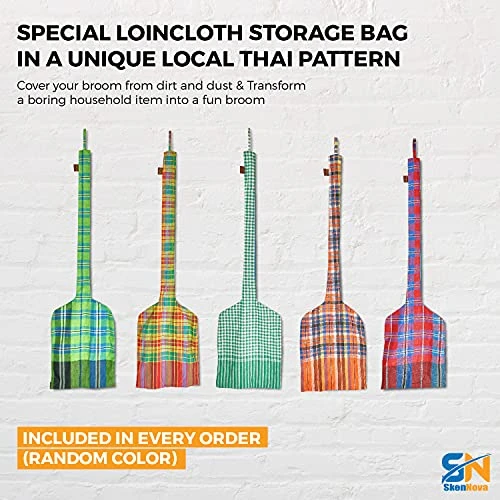 - ✔️DECORATIVE TRADITIONAL LOINCLOTH BAG: This Wooden Broom comes with a Unique Thai Style Loincloth Storage Bag specially designed to make sure that no dirt or dust will leave the house broom when kept and not in use. This Unique Loincloth is handcrafted and called “Pha Khao Ma” in Thai. It has been used by Thai adults and kids for hundreds of years for multi-purposes. Our Broom and Special Loincloth bag acts as the best cleaning household broom set