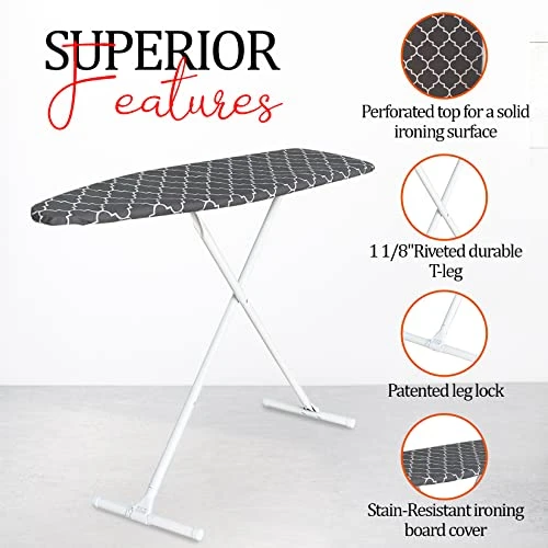 - AMERICAN QUALITY – Made in the USA with high quality materials and workmanship to make for a premium product that delivers exceptional performance. It comes with riveted legs for enhanced durability and rigidity to make your ironing experience more comfortable
