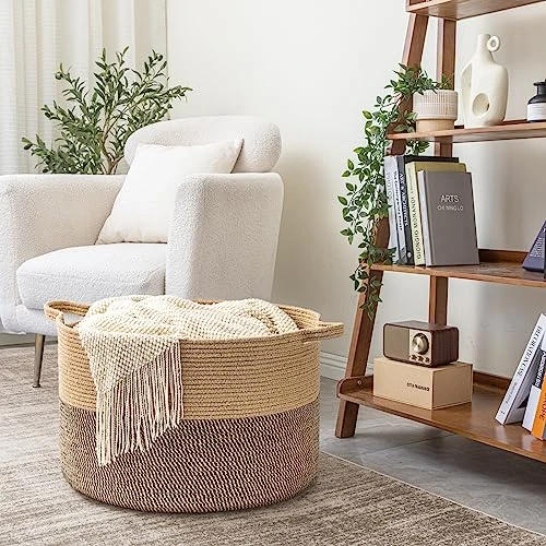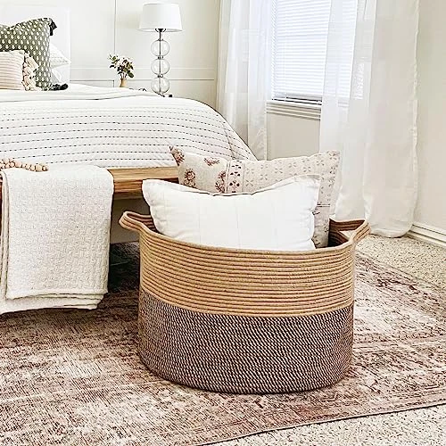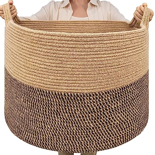 - Long-Lasting & Ultra-Soft: This big basket is made of sturdy cotton&jute rope and designed for long-lasting use. Different from a rattan blanket basket, this basket will not scratch your hands, clothes, and floors