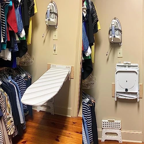 - 【180 Degree Swivel】: Hidden ironing board with 180° rotating turning mechanism, locks in left, right or inclined position, can be adjusted to the most suitable position.