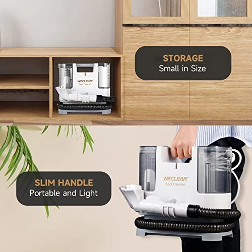 - Two Water Tanks Designed:WECLEAN C1 rug cleaner with two water tanks to separate clean and dirty water. 1.3L clean water tank and 0.5L dirty water tank.