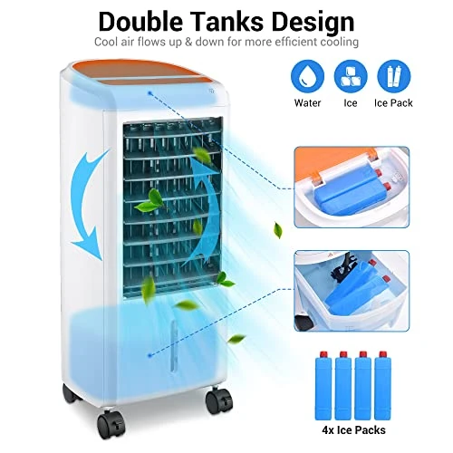 - [Remote Control &Adjustable Angle ]: With the 20 ft remote control, you can make all the necessary adjustments without ever getting up from the couch or bed.Comes with a highly-functional louver design that automatically oscillates from right to left at 85 degrees for a larger area coverage, along with a manual up-down angle adjuster to spread cool air evenly for excellent cooling and humidification, offering a comfortable experience in hot days,perfect for use at home, offices, dorms & RVs.